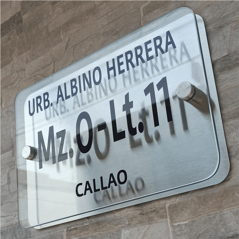 Dale un toque de elegancia y distinción a la entrada de tu hogar o negocio con nuestras placas de dirección en vidrio con fondo en acero inoxidable. Este diseño combina la transparencia y sofisticación del vidrio templado con la resistencia del acero inoxidable, creando una pieza única que resalta sobre cualquier fachada.