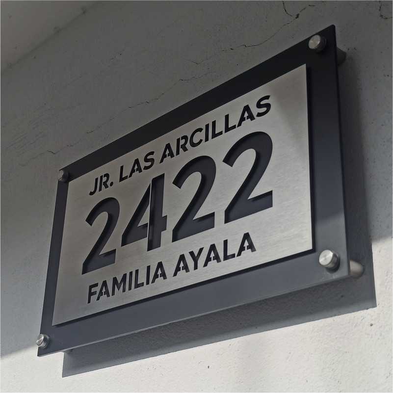 Nuestras placas de dirección personalizadas en acero inoxidable combinan elegancia y resistencia para dar identidad y estilo a cualquier fachada, ya sea de viviendas, oficinas o locales comerciales; fabricadas con acero inoxidable de alta calidad y técnicas de corte láser o grabado de precisión, ofrecen un acabado moderno y duradero que resiste la intemperie sin perder su brillo, con opciones de tipografía, tamaño y acabado que se adaptan a tu diseño; ideales para destacar tu dirección con un toque profesional y sofisticado, estas placas no solo cumplen una función práctica, sino que también transmiten imagen y prestigio, y puedes solicitarlas con entrega rápida en Lima o envío a todo el Perú; cotiza ahora y transforma la presentación de tu fachada con una pieza única hecha a tu medida.